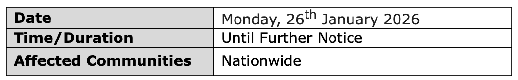 NOTICE OF INTERMITTENT TECHNICAL ISSUES IMPACTING SYSTEM ACCESSIBILITY