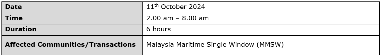 URGENT NOTIFICATION OF SYSTEM DOWNTIME: MALAYSIA MARITIME SINGLE WINDOW (MMSW)